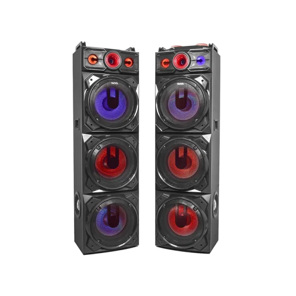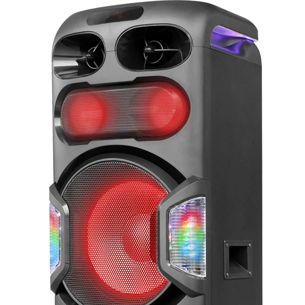 ,اولویت اتصال با میکروفن ,ساب ووفر دوگانه در ابعاد 12 اینچ ,توییتر 3 اینچی ,قابلیت ضبط REC ,قابلیت کارائوکه ,مجهز به حالت اکو ,صفحه نمایش دیجیتال ,دسته و چرخ برای حمل آسان دستگاه ,قابلیت تنظیم صدای تریبل، باس، اکو و صدای میکروفن |