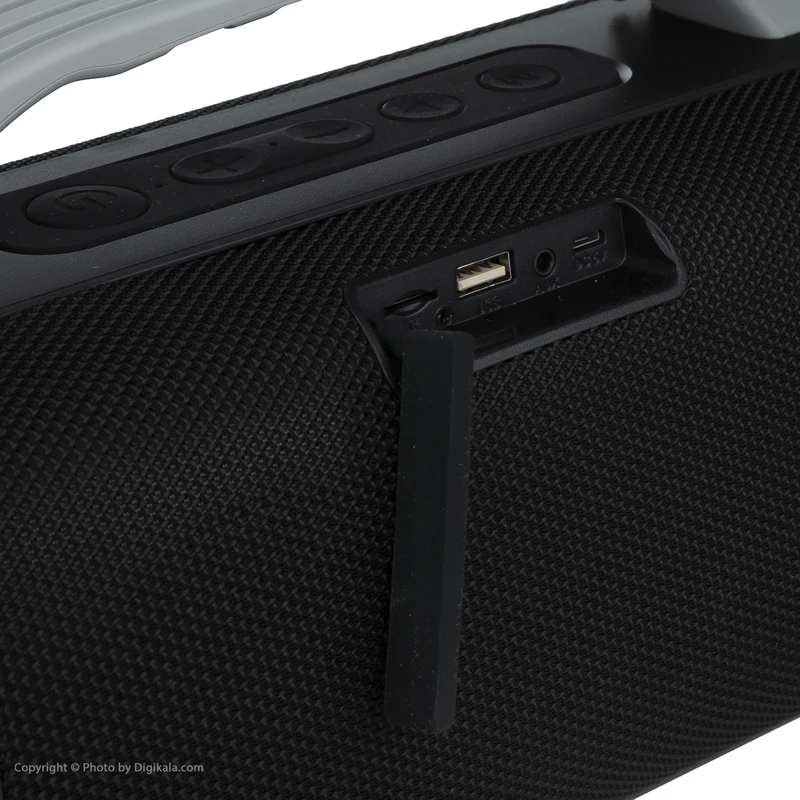 در پشت اسپیکر پرتابل تسکو مدل TS 2305 یک پوشش پلاستیکی است که اگر آن را کنار بزنید میتوانید پورتهای شیار کارت حافظه، پورت USB، AUX این دستگاه را ببینید.