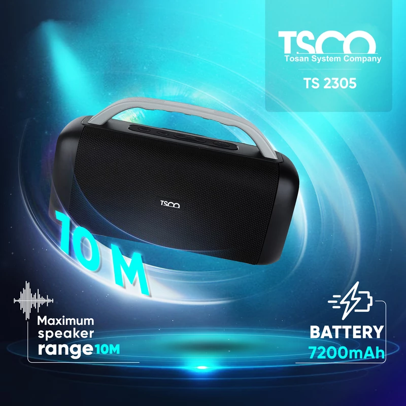 اسپیکر بلوتوثی قابل حمل تسکو مدل TS 2305 نسبت به جثه خود، باتری، قدرت پرتاب صدا و همچنین باس عالیای دارد.