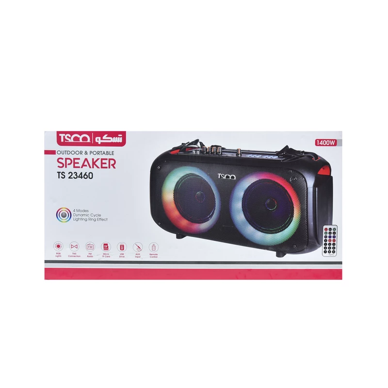 اسپیکر پرتابل تسکو مدل TS 23460 در ابعاد 225*510*255 میلی‌متر در رنگ مشکی طراحی و تولید شده است.