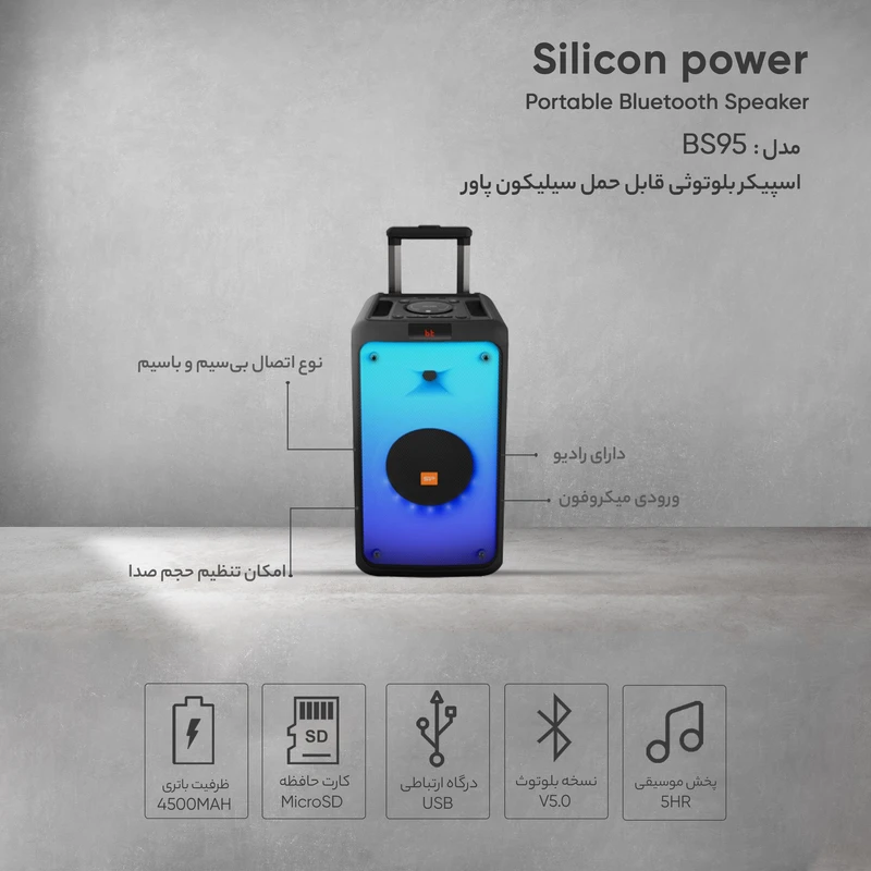 اسپیکر بلوتوثی قابل حمل Silicon Power مدل BS95 + میکروفن و ریموت