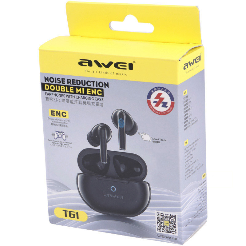ایرپاد AWEI مدل 61 یک ایرپاد بسیار زیبا با قابلیت گیم و همچنین قابلیت نویز کنسلینگ با شارژدهی بالا که در حالت مکالمه تقریبا 5 ساعت و 6 ساعت پخش موسیقی دارد برد بلوتوث این هندزفری هم به 15 متر میرسد و قابلیت شارژ سریع را نیز دارد