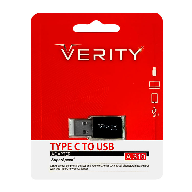 تبدیل شارژر VERITY دارای ورودی تایپ سی و خروجی USB دارد که مناسب کابل شارژ می باشد و قابلیت انتقال 3.1 را دارد