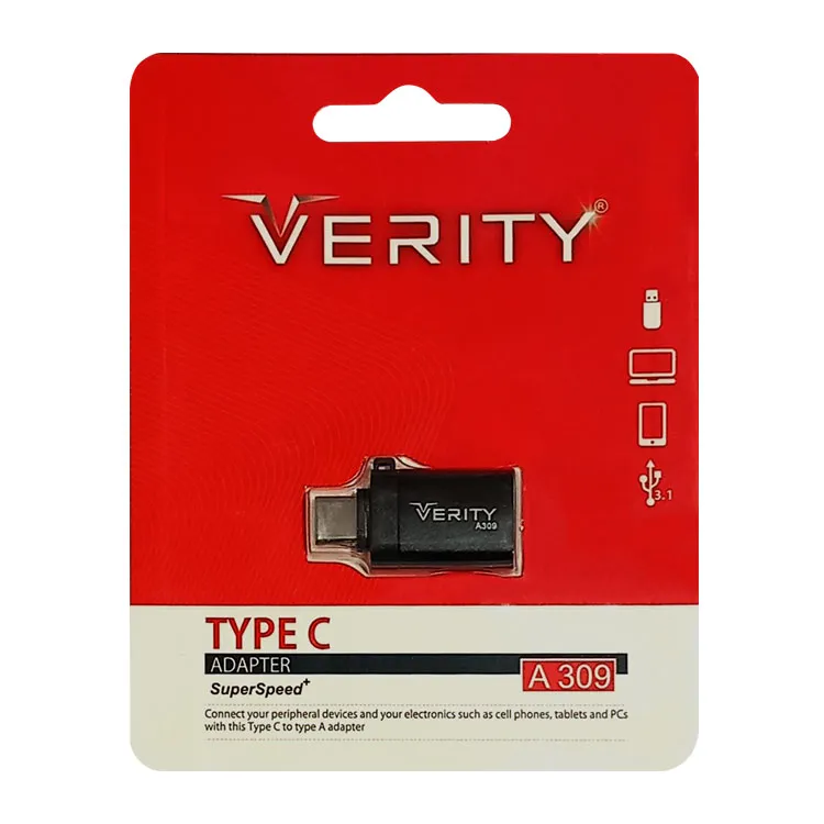 تبدیل OTG وریتی دارای جنس پلاستیکی و سری فلزی و مقاوم در برابر فشار و ضربه، رابط از نوع تایپ سی و پورت از نوع USB 3.1 پشتیبانی می کند و سازگاری با ویندوز XP، Vista، 7، 8 و Mac OS و تمام اندروید ها