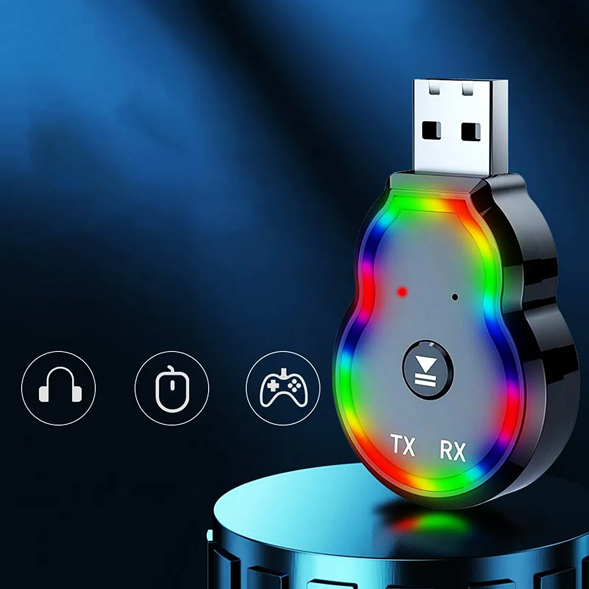 دانگل بلوتوث خودرو  ENZO مناسب برای ماشین و همچنین تلویزیون و دستگاه که از USB پشتیبانی می کند که نسخه بلوتوث 5.3 و پشتیبانی از کیفیت صدا استریو HiFi و نور پردازی RGB دارد
