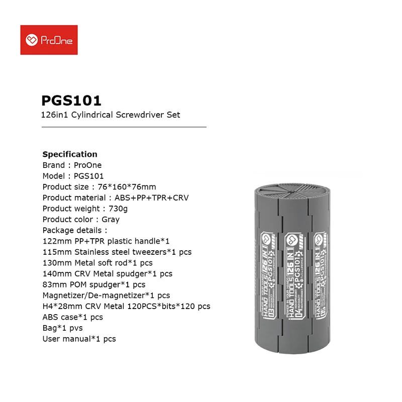 ست پیچ گوشتی استوانه ای PROONE مدل PGS101 بسته 126 عددی با ضمانت کاوان سرویس