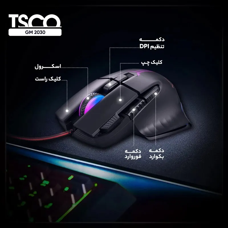 ماوس گیمینگ TSCO مدل GM 2030 با 12 ماه گارانتی توسن سیستم